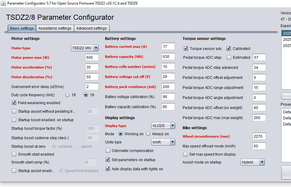 | Buongiorno, Dalle ultime versioni non riesco più a visualizzare i parametri di coppia, livello 1, sei tocchi finché non appare E4, calibrazione della coppia. Ho provato con le versioni 43, 44, 45 e 47, ma non funziona nulla; non riesco a visualizzare la calibrazione. Inoltre, in quelle versioni, il motore accelera a malapena. Ho provato a visualizzarlo a livello zero con la calibrazione attivata, ma non so quale pulsante sia il WALK ASSIST in VLC5. Sono tornato alla versione 40 e il TSDZ2 funziona di nuovo in modo potente con la coppia calibrata a 90-260. Probabilmente sbaglio qualcosa.