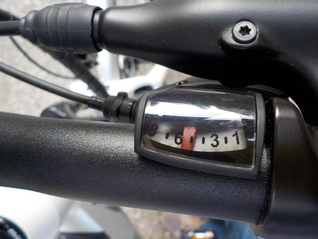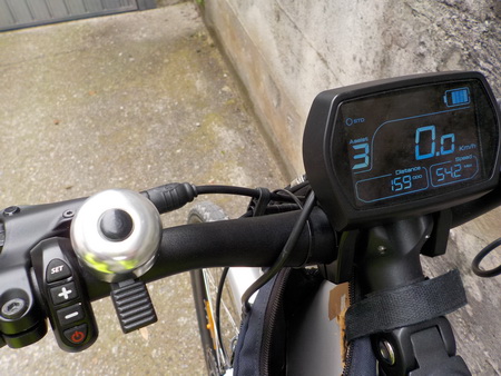 Il cruscottino è a cristalli liquidi bianchi su sfondo nero molto ben visibile di giorno anche con il sole intenso E’ posto al centro del manubrio in posizione ben visibile e protetta in caso di cadute accidentali della bipa Le cifre sono grandi e ben visibili e fornisce le indicazioni “elettriche” e quelle da ciclocomputer Nella mia esperienza è il più leggibile display che ho finora incontrato