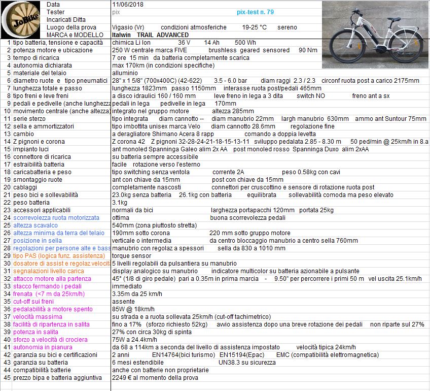 Ho fatto una breve comparazione con il test della Ekletta MC 2017 (bipa con hub posteriore 48V, decisamente bella e pure più economica) e in salita mi pare che sia un pò meglio la Ekletta fino al 10%, pari al 13.5%, un pò meglio la Italwin dal 17% in su, fatto salvo che la Italwin con sensore di sforzo richiede quasi sempre un pò più di fatica. Se la Italwin avesse un 48V potrebbe starle davanti anche su salite moderate?