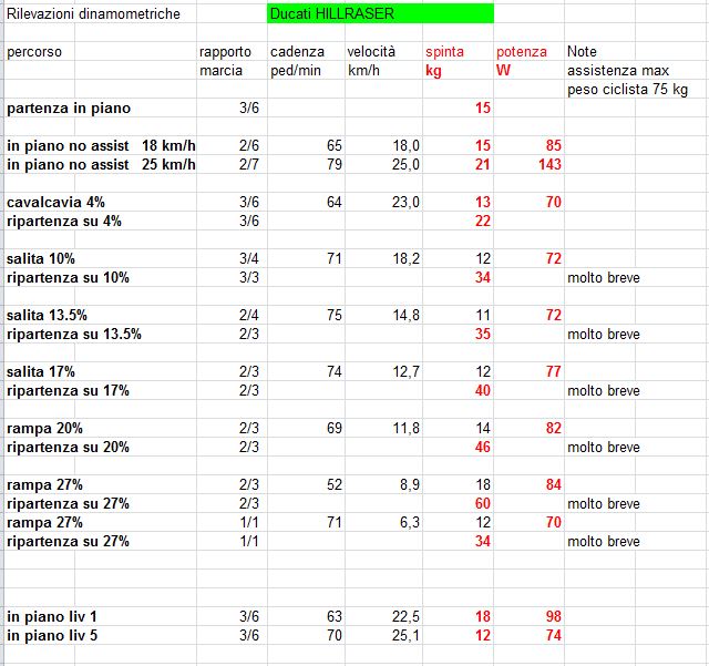 Nella tabella "dinamometrica" ci sono sempre indicati sia i kg sia i watt Poi nel testo uso a volte un parametro a volte l'altro Poichè il rapporto fra spinta e watt dipende dalla cadenza di pedalata, tendo ad citare i watt quando la cadenza è alta mentre parlo della spinta quando la cadenza è bassa Questo perchè, a cadenze basse i watt erogati calano ma lo sforzo che si fa sui pedali (per ottenere quei pochi watt) è elevato