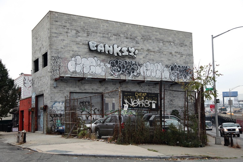 Sei lettere grigie gonfiabili come palloncini, per dare una mano ad altri writer come lui, ma meno famosi. Sei lettere come il suo nome. BANKSY. E' l'ultima opera che l'artista inglese ha lasciato sul muro di un edificio sulla Long Island Expressway, lungo la strada dell'aeroporto J.F. Kennedy, precisamente tra Borden Avenue e la 35ª strada. L'artista ha pubblicato due foto dell'opera sul suo sito e sotto ha scritto: "E questo è tutto. Grazie per la vostra pazienza. È stato divertente. Salvate 5 Pointz. Ciao"
