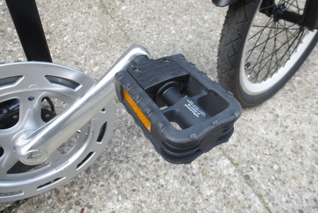 I pedali e le pedivelle sono in lega e robusti; le pedivelle sono più corte del consueto (152mm) e consentono una pedalata più agile; permettono inoltre di tenere la sella più bassa rispetto al terreno così si arriva meglio col piede a terra quando ci si ferma I pedali sono ripiegabili (comodi anche per non farsi lividi sulle caviglie quando si accompagna la bipa a piedi)