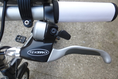 L’impianto frenante è realizzato con freni V-brake, potenti e correttamente modulabili Le leve sono morbide e comode; quella di sinistra ha integrato il campanello Lo spazio di frenata risulta ben contenuto: 3.60 metri da 25km/h e i freni non si affaticano in discesa Ma c’è tendenza al ribaltamento se si frena bruscamente