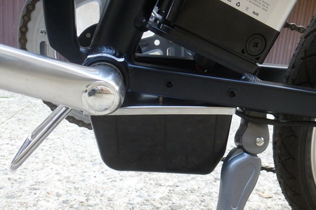 E’ alloggiata in una scatola sotto al movimento centrale; è protetta da urti accidentali da una robusta barra che la protegge anche durante le operazioni di piegatura La posizione è comoda per le manutenzioni e non ostacola le operazioni di piegatura e trasporto