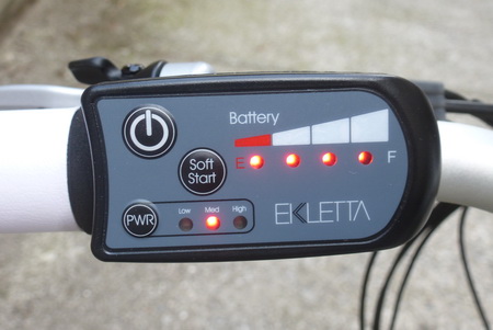 I led indicano lo stato di carica della batteria e il livello di assistenza selezionato Un pulsante accende (e spegne) la centralina Quello in mezzo attiva il soft-start /camminata assistita Quello in basso commuta ciclicamente il livello di assistenza fra i tre disponibili Il livello “zero assistenza” è ottenibile semplicemente spegnendo la centralina