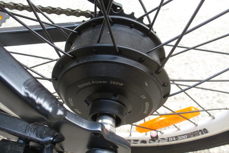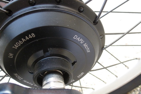 E’ un hub posteriore, geared, da 250W, a 36V, brushless, sensored, costruito dalla Dapu