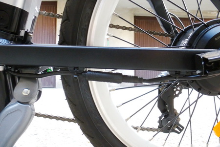 Poi i cavi spariscono nel telaio e raggiungono la centralina praticamente senza mai … riemergere Resta solo il cavo del motore che deve restare esterno per consentire il distacco del connettore Tutte le parti elettriche hanno il loro connettore per una più facile riparazione Il dischetto del PAS è montato sull’asse pedali dal lato corona, in posizione protetta ma facile da raggiungere per eventuali manutenzioni ed il sensore è dotato di led per una diagnosi facile ed immediata del suo corretto funzionamento (basta far girare i pedali e vedere se il led lampeggia)