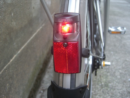 Il fanale posteriore (Spanninga SPXb1) è luminoso e visibile anche da angolazioni laterali; ha un led rosso a luce fissa ed integra il catadiottro rosso “a norma”
