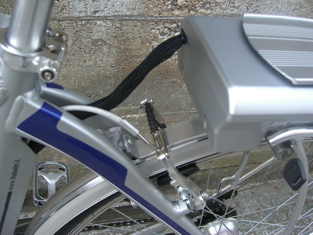 più che cavi, catene e allarmi sonori, come antifurti valgono i lucchettoni a U di abus e kryptonite, messi bene (trovi un po' di informazioni nella sezione "accessori") --- detto questo, forse qualcuno dei nostri amici più ingenosi sa consigliarti come proteggere meglio la batteria, anche se non abbiamo ancora mai avuto notizia di batterie rubate e in generale con una batteria di questa misura l'antifurto più convincente resta il portarsela dietro nelle condizioni più esposte, che rende assai meno appetibile il furto della bici