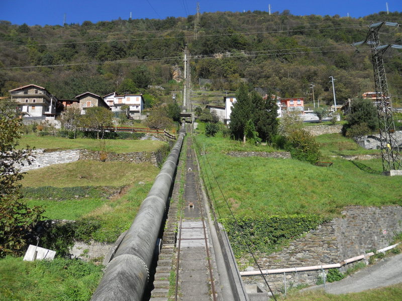 La condotta forzata con binario di servizio per il carrello funicolare, che alimenta la centrale idroelettrica di Gravedona. Immagine: 153,54 KB