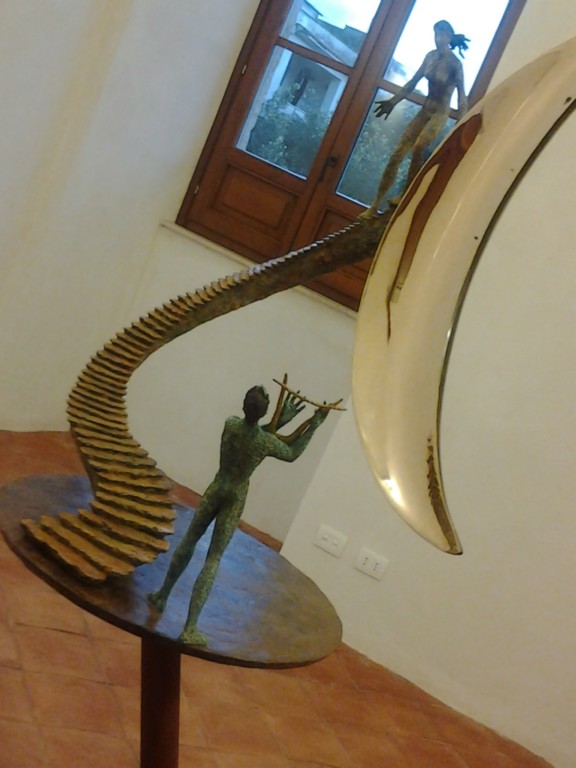 Solo un accenno perché già ne ho parlato 1 o 2 pagine fa e perché ho omesso in queste foto il nome dello scultore: Presso il complesso monumentale del collegio dei Gesuiti di Alcamo, la mostra di scultura dal titolo “Rosa Fresca Aulentissima” “Omaggio a Ciullo D’Alcamo” dello scultore alcamese Giacinto Bosco.