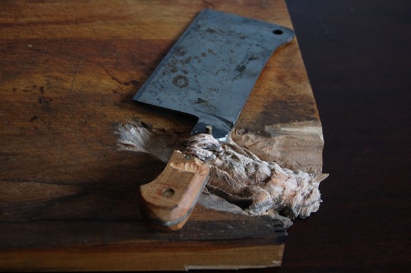“Quando gli scampoli di vita vengono imposti ad un oggetto, ed è vero soprattutto per il lavoro di incisione che faccio, questo ci racconta di una storia passata o di una vita precedente. Quindi mentre le persone vedono nel mio lavoro qualcosa di macabro, io lo considero spesso una speranza, come un ultimo stralcio di vita. Nonostante la vita sia finita, almeno quella vita ha avuto un inizio e un percorso anche, quindi creando in questi oggetti inanimati degli elementi corporali li si rianima in maniera virtuale.”