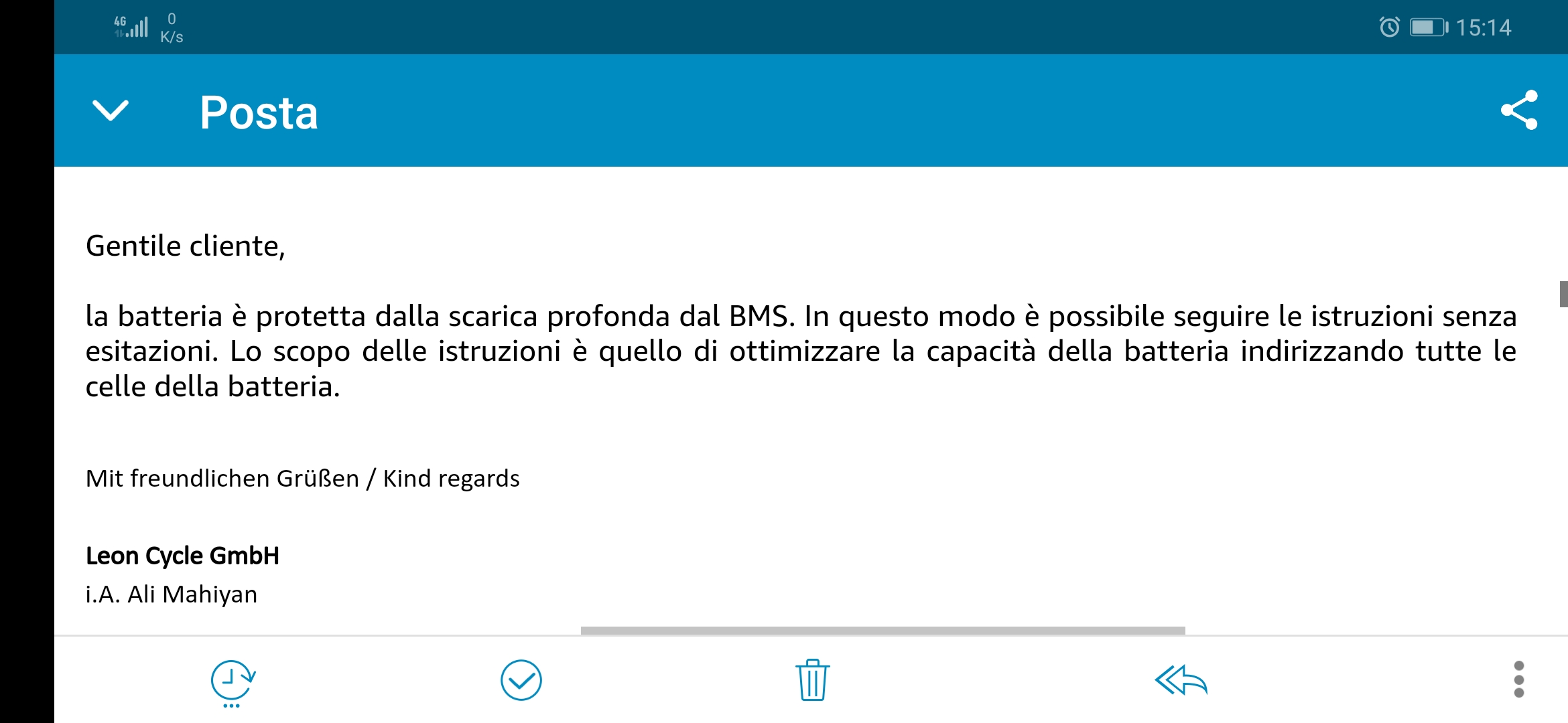 Altra nota: il throttle non si può mai impostare alla velocità massima del PAS: se il PAS è a 45 Km/h il throttle si può mettere a 32 o 25 o 20 o 6 . Se il PAS è impostato a 25 il throttle si può impostare a 20 o 6 .