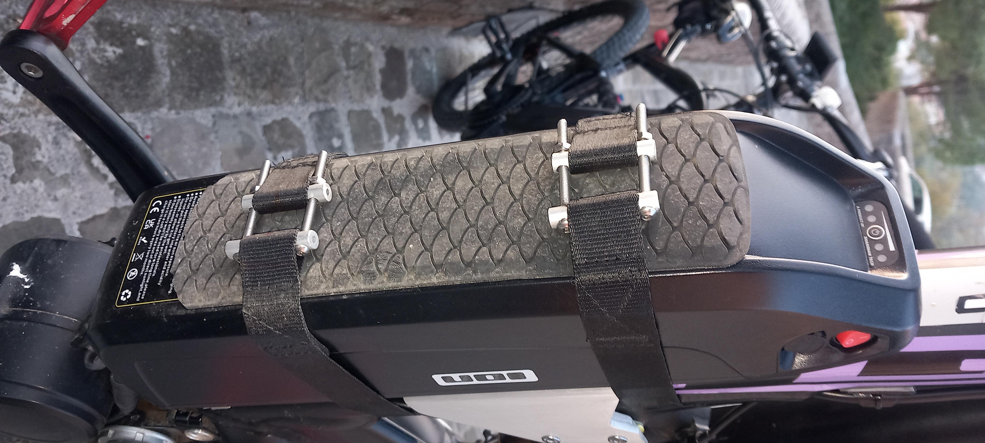 Vi mostro il bel lavoro di un mio amico su una gt da enduro come la mia, ma fatta meglio Notare il sistema adottato per far tirare le fasce di sicurezza per la batteria ( non è come me fa le piste da dh , quelle vere. Ma pesa 57 kg ! ) Immagine: