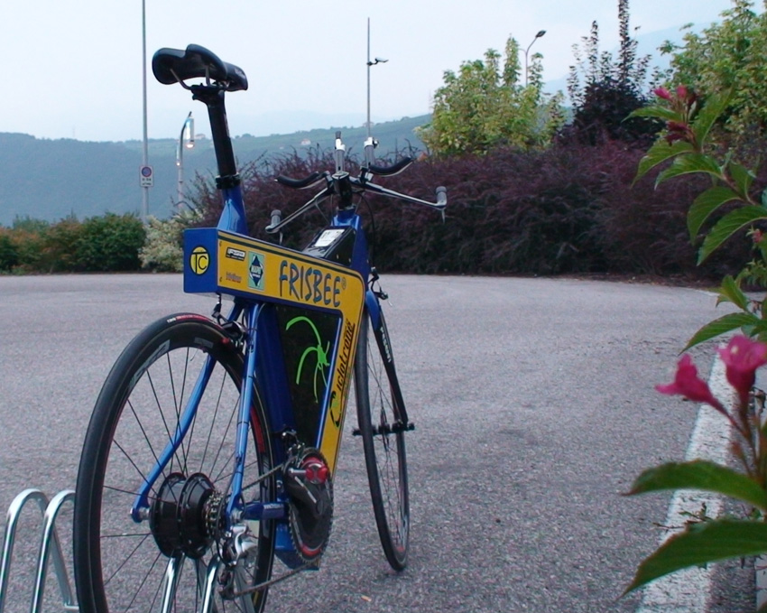 FRISBEE CICLOTRONE è una innovativa bici elettronica “made in Italy” da TC e Mapei Sport per l’allenamento di ciclisti professionisti su pista. Con un telaio di leggerissimo alluminio/carbonio, monta componenti da corsa FSA e può essere dotata di motori di diversa potenza e batterie superleggere di diverso amperaggio. La Ciclotrone raggiunge i 60 km su pista >>