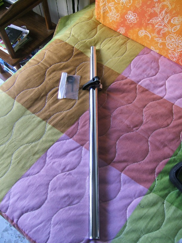 Arrivato tubo telescopico..ecco una prima foto. Mi è arrivata però solo una camera d'aria e non due come ordinato..anche se sulla bolla di accompagnamento c'è scritto..the rest of your order will follow shortly..quindi suppongo che a breve arriverà l'altra camera d'aria. Comprato anche il morsetto reggisella. Ora non resta che provare il tubo