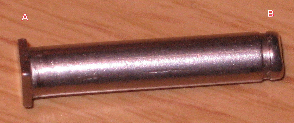 Sul lato B c'è una gola che sembra fatta per ospitare un anello seeger che manterrebbe il perno in posizione impedendole lo sfilamento A me sembra che si sia semplicemente perso