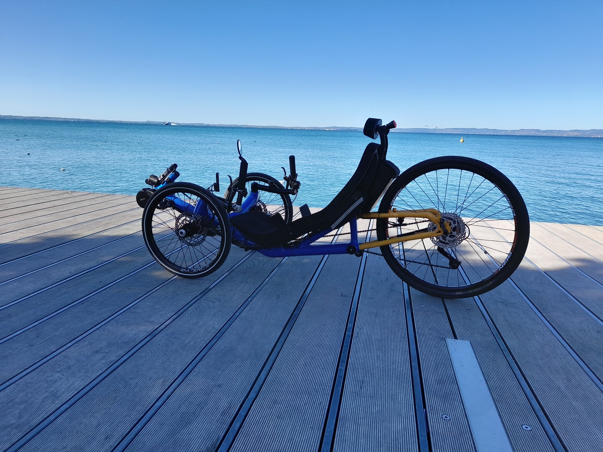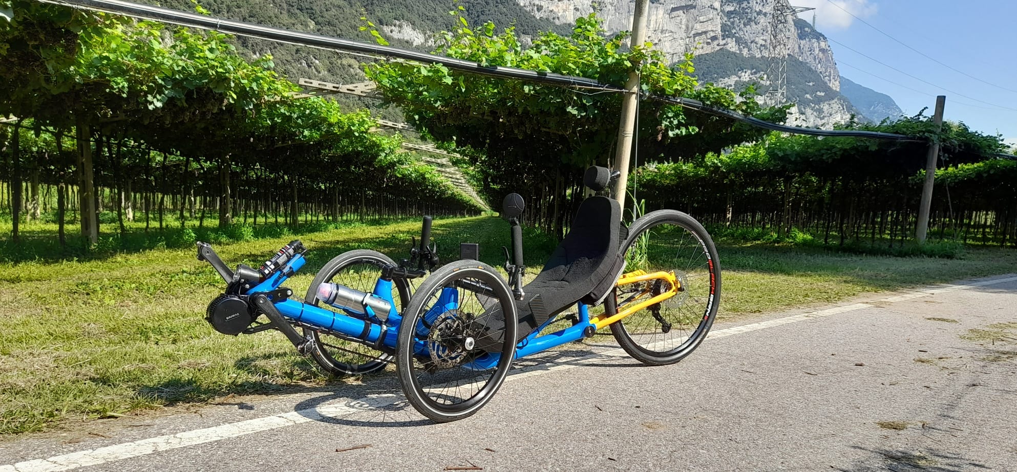 Ciao causa problemi di spazio mi trovo costretto a vendere il mio trike per far posto a nuovi progetti,il mezzo è perfetto completo di motore e batteria da 20 Amp cambio shimano xt e freni idraulici, adatto a ciclisti di statura 170 -175 cm circa ma sul sedile ci si regola agevolmente, pe qualsiasi info foto contattatemi pure anche su w-app se realmente interessati. La richiesta è di 3000 euro completo e pronto strada così come in foto, posso venderlo anche senza motore batteria e guarnitura oppure posso personalizzarlo con motore al mozzo posteriore e guarnitura da voi forniti e prezzi da concordare assieme. Il trike è divertentissimo permette di fare sport in maniera estremamente comoda godendosi il panorama, grande scalatore e vero kart in discesa.