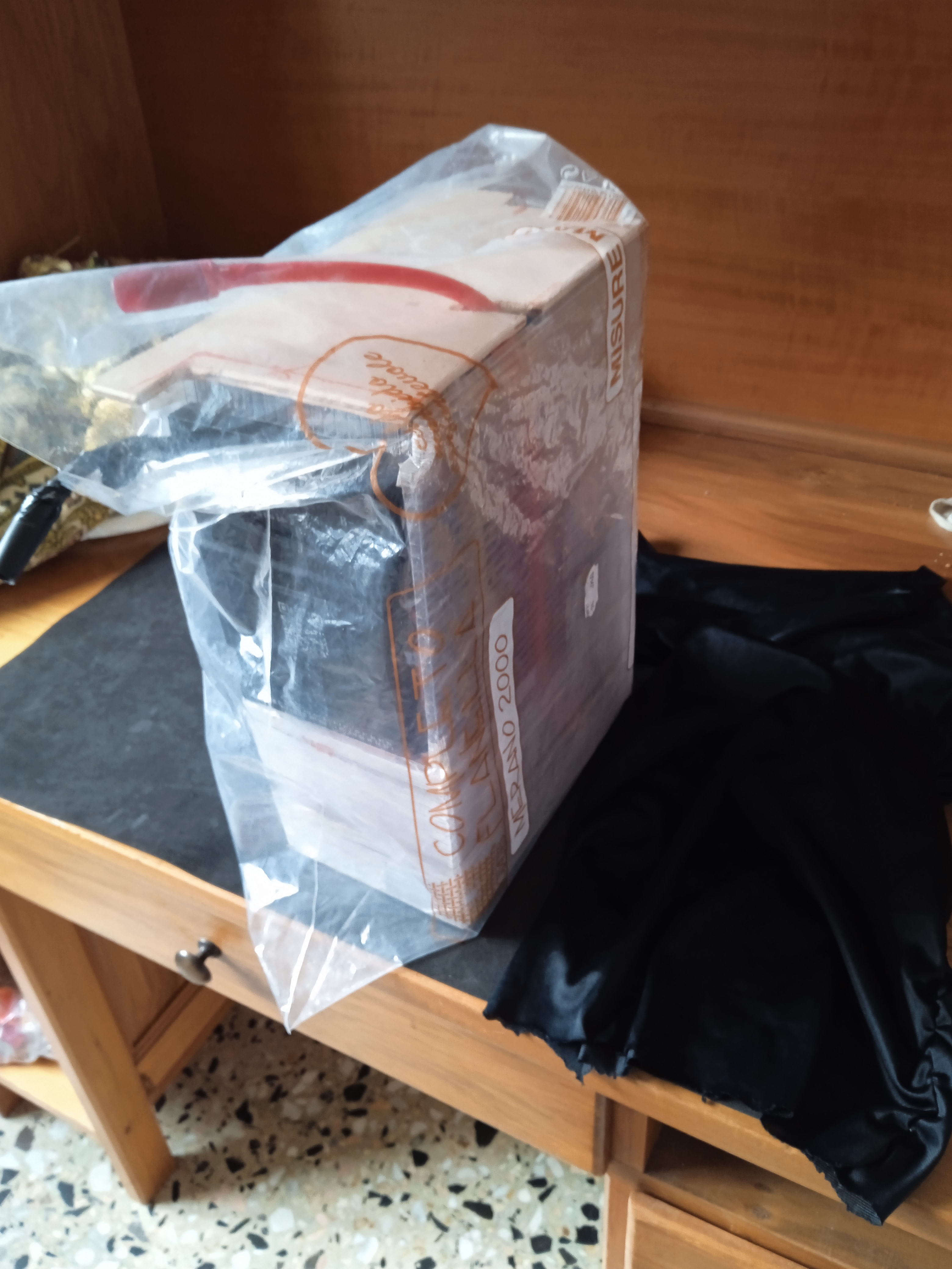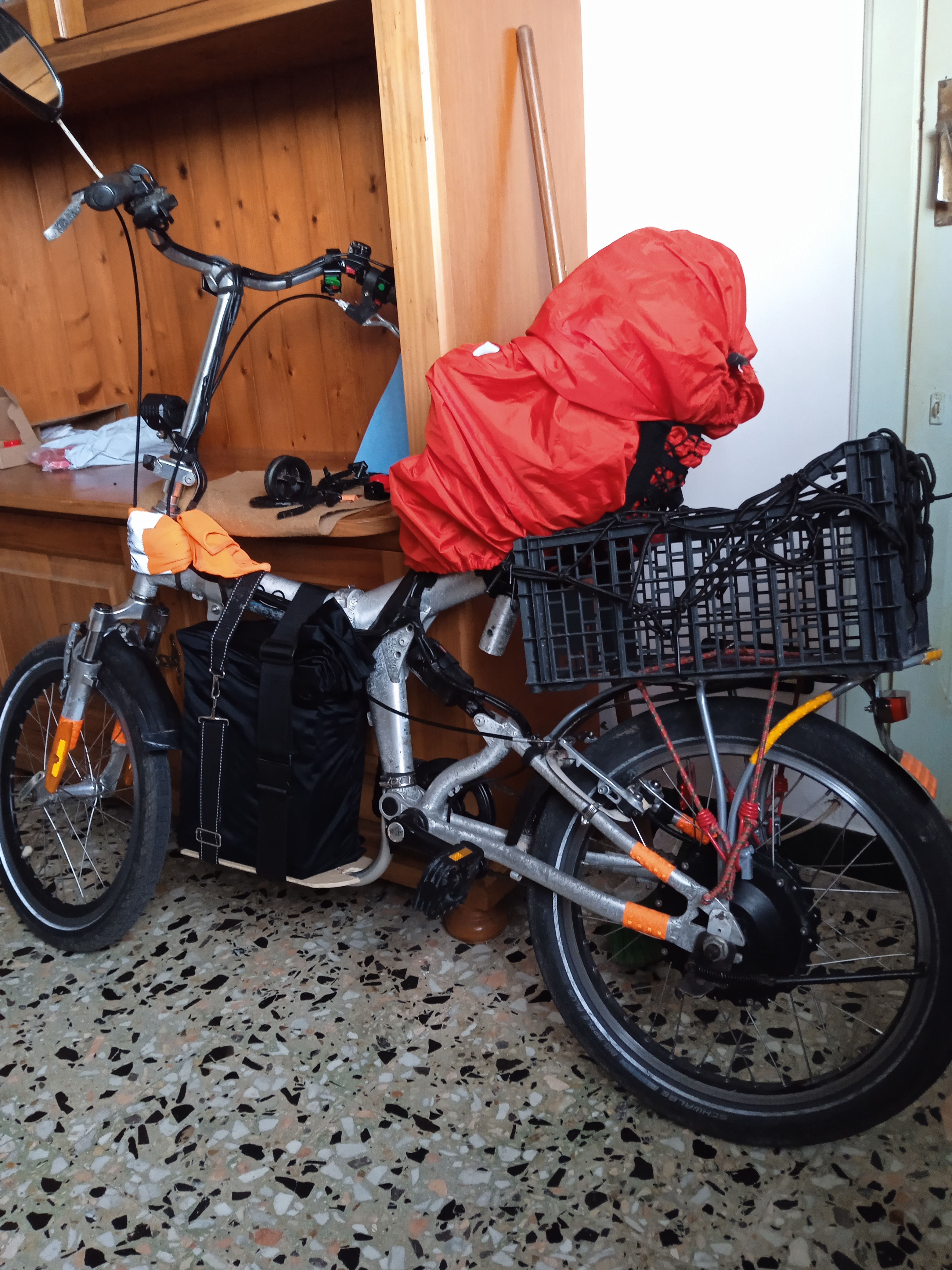 Provvisoriamente nella busta x la pioggia e ricoperta con tessuto elastico; [Ho visto che molti tessuti impermeabili: non lo sono affatto al 100%];
