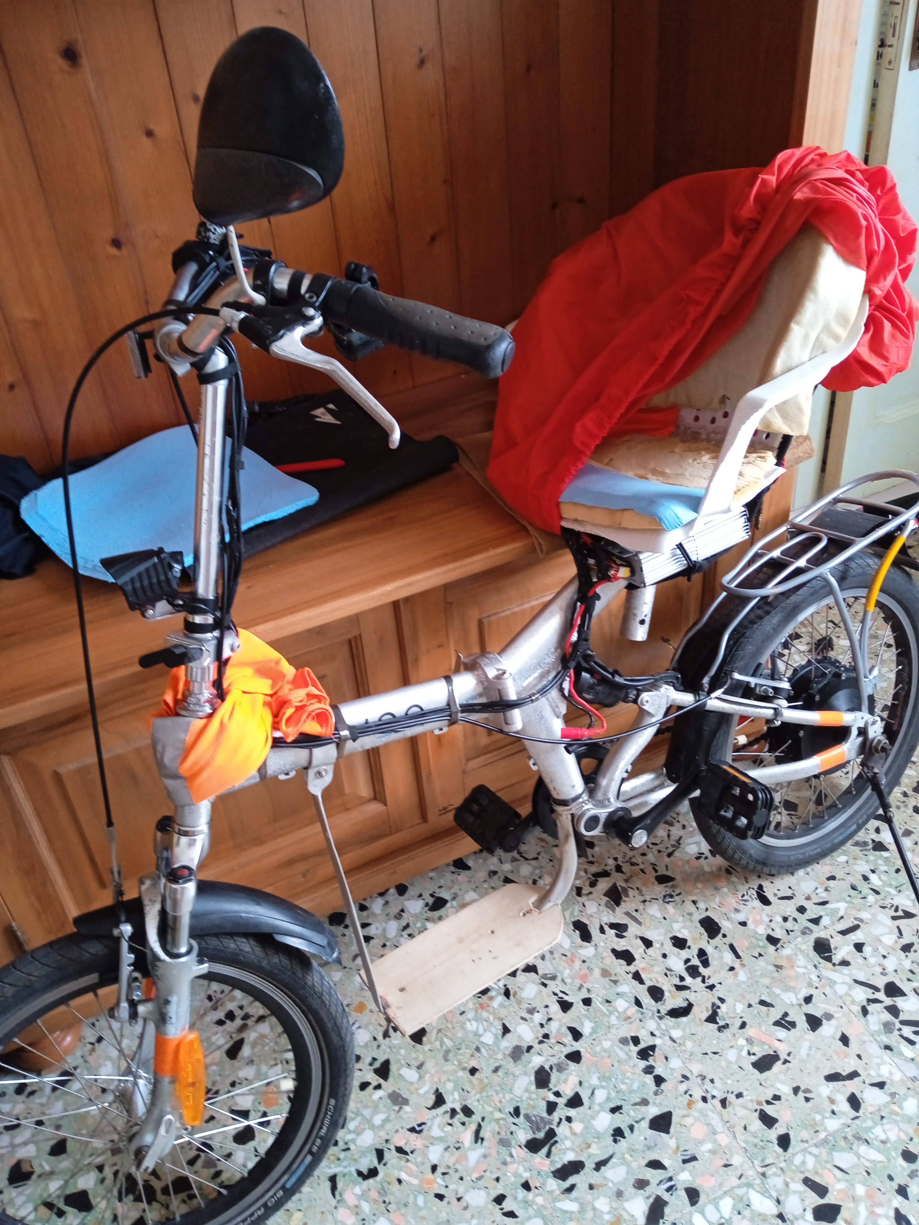 Sella schienale: sedia in plastica bambin, con spugna più spessa davanti; Pedali corti. Ho tolto il cambio; Marcia fissa 11 denti.