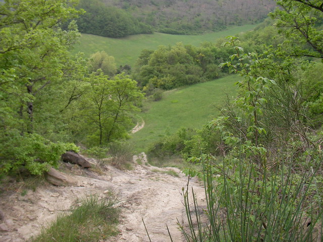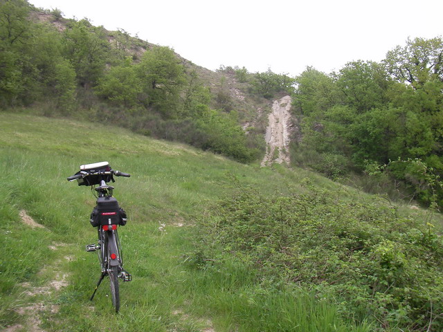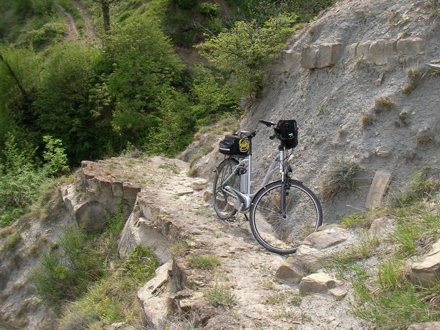 Particolare della zona è la cosiddetta "vena del gesso", ovvero ogni tanto affiorano nel verde prepotentemente roccioni di questo minerale e ovviamente i sentieri ci vanno sopra (roba quasi da rocciatori altro che bici elettriche)