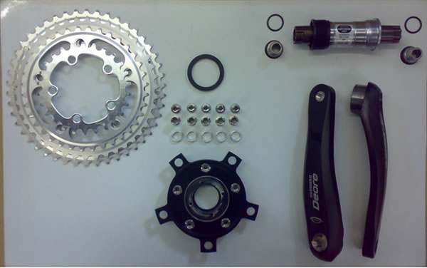 mi sono dimenticato di dirti che per quanto rigurda la vostra discussione di quell'elekro-antieb che mi hai linkato ho letto tutto, e vi sciolgo il dubbio amletico il kit puo disporre opzionalmente anche della "corona libera" vi inserisco una foto , non so se si vedrà, in tal caso la corona nera a 5 stelle è la cosidetta ruota libera, esiste pero' anche il modello piu' spiccio che poi era cio' che volevo fare io ancora prima di vedere questa soluzione, che è quella di usare una delle corone a disposizione sulla guarnitura. Gli inconvenienti sono che ovviamente il motore è sempre collegato e devi preventivamente scegliere se andare in salita o in pianura per collocare la catena nella corona piu' adatta.