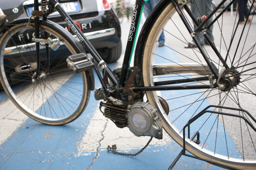 Purtroppo, per inciso, per poter guidare anche questi mezzi, anche con motore ausiliario, ci vuole bollo, assicurazione, casco, targa e patentito... |