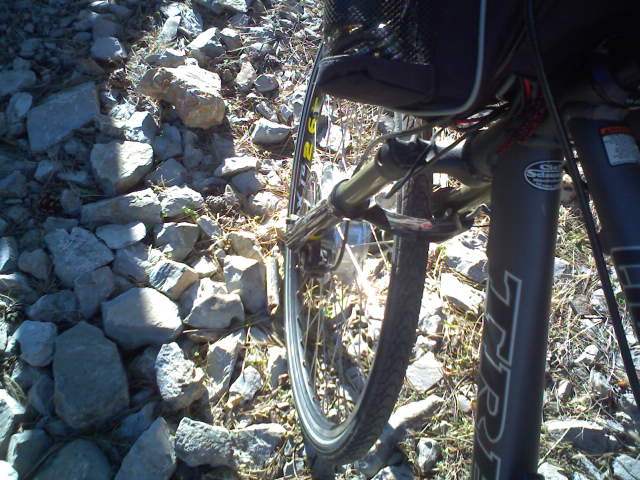 Il terreno era molto duro e a tratti brinato, ma la schwalbe non ha dato segni di scivolamento (le pozzanghere ghiacciate come nella foto le ho evitate naturalmente )