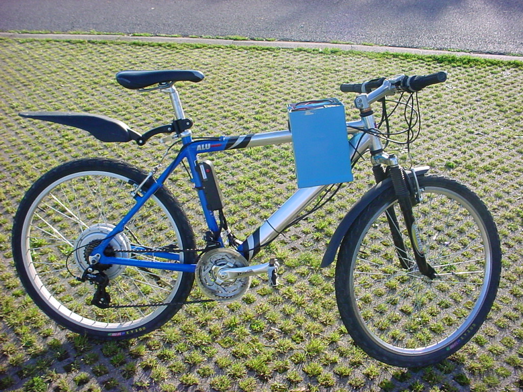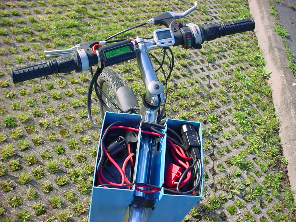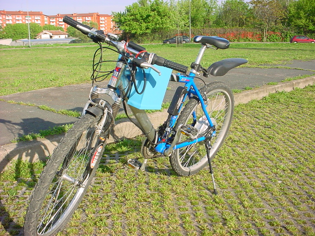 Il lyte proviene dalla ASVEA, come di consueto, ed ho optato per il motore posteriore dato che la mia MTB non ha i supporti per il portapacchi posteriore di conseguenza non sapevo dove metterci le batterie. Ed è così che ho pensato alla soluzione di un portabatterie da posizionare sulla canna..primo errore: mi sono recato con un mio amico in un'industria metallurgica che lavora principalmente con la lamiera e ci siamo fatti costruire la "scatola" con la lamiera da 2 mm; 4,4 Kg di peso..va bè, potevamo usare quella da 1 mm ma ormai era fatta (35€). Comunque l'idea era quella di metterci 4 batterie Fiamm 7,2Ah (peccato che ho scoperto solo alla consegna che non erano le deep-cycle, secondo errore, ma ormai era fatta anche questa..) per cui il tutto è alimentato a 48 V.