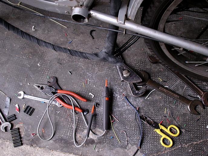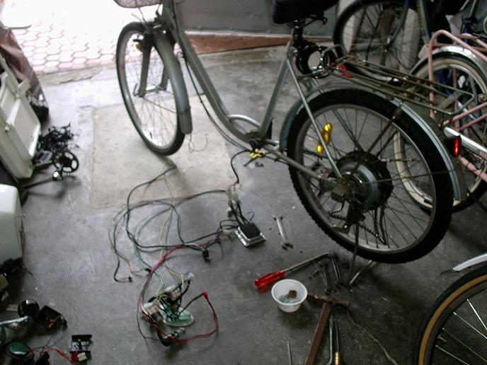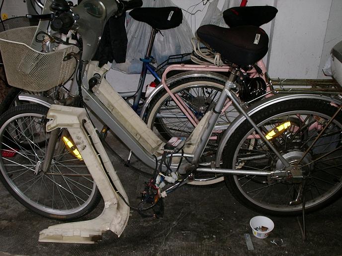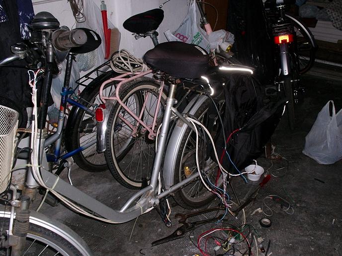 L'inizio dei lavori visto di fronte, notare anche le altre bici dietro sempre da 24" di mia moglie e mia figlia.