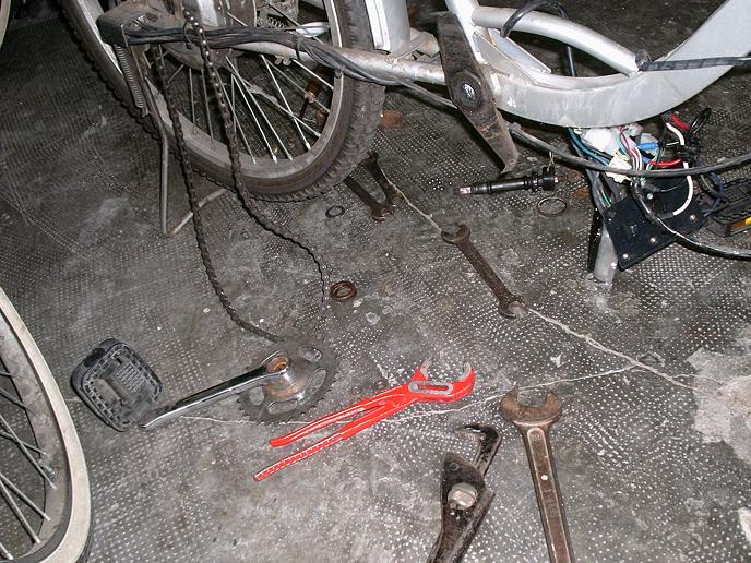 Qualche attrezzo per poter lavorare e la corona molto piccola in un blocco unico con la pedivella