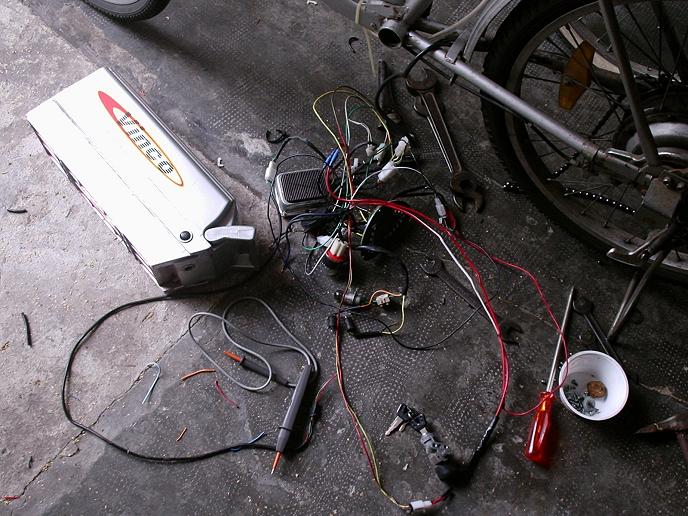 soprattutto m'incuriosiscono la borsa sul telaio (centralina? no, non pare) e quella sul manubrio (?), le borse a bisaccia immagino contengano le batteria con l'ottimo effetto però di nascondere il motore... hai giantizzato la cinesona!