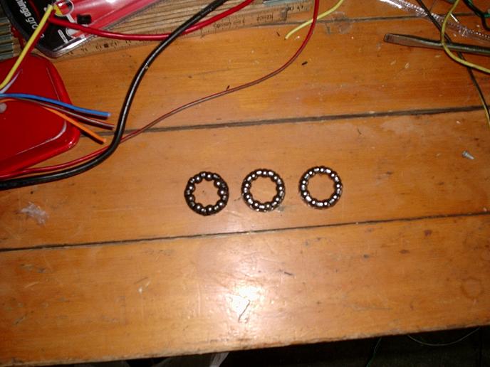 Il movimento centrale visto da vicino, è visibile soltanto un cuscinetto integro, l'altro era completamente maciullato e sono rimaste solo le sfere