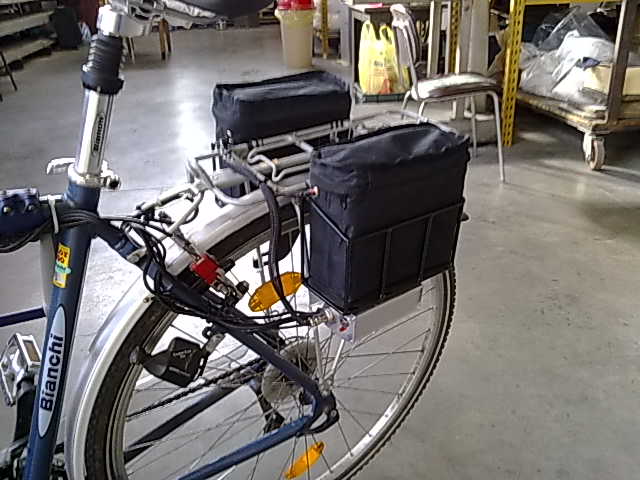 | credo che pu' in basso si possono mettere meglio è il peso di 9 kg su due borsettine tra il piano del portpacchi ed il cambio non mi sembra male come ubicazione certo ci vuole un cavalletto centrale. Per quanto rigurda il motore se leggete bene la descrizion del sito che vi ho dato è senza spazzole ma la cosa che mi è piaciuta è il fatto che gira a 24 volt e quindi posso circolare cn 2 batterie anzichè 3 e 5 kili in meno fanno comodo. Domani vi posto le foto e le mie prime impressioni, io non devo vendere nulla a nessuno e se qualche cosa non va sarò sincero. Ho tenuto la mia ruota e rimetttere la bici come prima è un attimo e non ho bisogno neanche del cilista. |