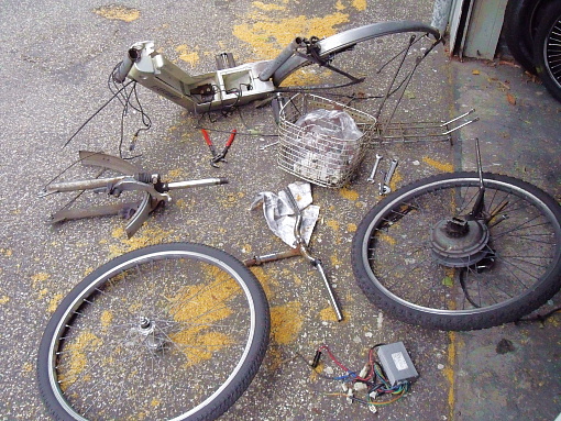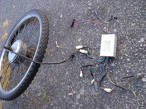 ho trovato appoggiata ai cassonetti del rudo questa ex bici elettrica,l'ho presa,smontata e ci ho recuperato la ruota motorizzata e la centralina 36V 5A,essendo la ruota da 26 pollici come quelle della mia mountain bike sto provando a elettrificare la mtb,per la cronaca davanti non ci sta (bisognerebbe allargare le forcelle di circa 1 centimetro,da evitare) dietro ci stà però il motore aveva un solo pignone a vite,ho uno spazio di 20 millimetri,anche dalla parte opposta c'e' una filettatura a cui c'era avvitato il freno a tamburo,inizio con qualche domanda: 1) ci sono dei pignoni a vite che in 20mm hanno più di una marcia? 2) da una parte della centralina fuoriescono un filo rosso ed uno nero,sono quelli che vanno attaccati al più e meno della batteria? 3) si può attaccare una batteria 36V con un interruttore per dare e togliere corrente per vedere se centralina e motore funzionano? 4 ) a cosa andrebbero collegati i fili che ho contrassegnato con i numeri? (altri due connettori che non si vedono in foto sono collegati con i due connettori che escono dal motore) grazie,per le eventuali risposte.
