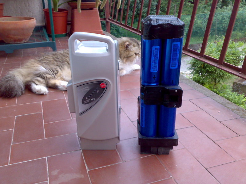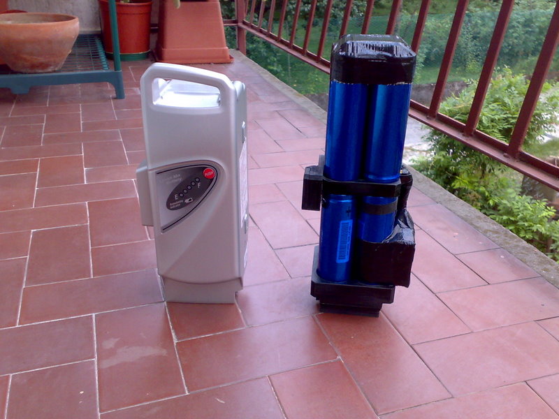 Poi guardando bene le foto iniziali, penso che al posto di un pacco da 4+4 pile a sezione quadrata, forse potrebbe starci anche un pacco da 6+6 pile a sezione circolare (5 perimetrali e 1 al centro). Il tutto non dovrebbe intralciare la pedalata e l'autonomia sarebbe così aumentata del 50%!