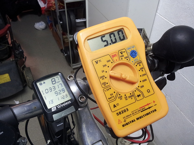 se ti saldi tre fili all'integrato e nastri un tester al manubrio ti fai un giro e vedi quanto esce così ti togli il dubbio per capire intanto da quale velocità hai 5V