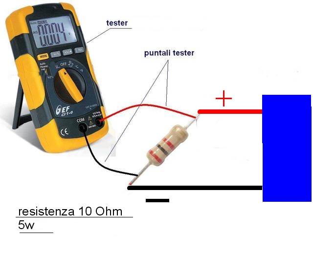 Per controllare quanto assorbe il modulo (con e senza telefono collegato) basta mettere in serie sul polo negativo o positivo un tester posizionato su misura corrente continua. Il tester deve essere messo tra la batteria e il modulo switching