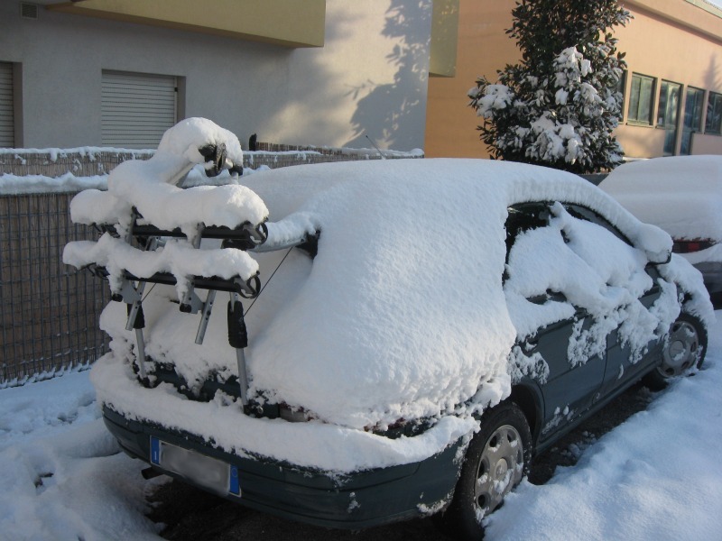 ma ascoltate: avete problemi di trazione sulla neve fresca? io giro regolarmente con la mia frisbee e con la born pieghevole senza particolari problemi I problemi nascono quando passano gli spazzaneve e accumulano sul ciglio venti centimetri di schifezza gelata su sui non si può salire e, ancora peggio, quando la neve gela perchè fra rotaie fatte dalle auto, pezzi di neve ghiacciata sulla strada e lastre di ghiaccio, non ci stanno in piedi nemmeno i pinguini Quando le strade sono così anch'io preferisco (molto a malincuore perchè magari c'è il sole) lasciare a casa la bici e girare a piedi ... con gli scarponi dalla suola artigliata con cui comunque scivolo alla grande