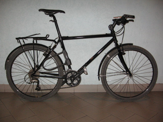 molte grazie per il suggerimento, proverò senz'altro la bici è una conversione da una mtb scott del 1996, attacchi per il portapacchi e parafanghi saldati da un telaista qua dietro casa, tutto deore senza pretese, mi sono ispirato alla thorn sherpa |