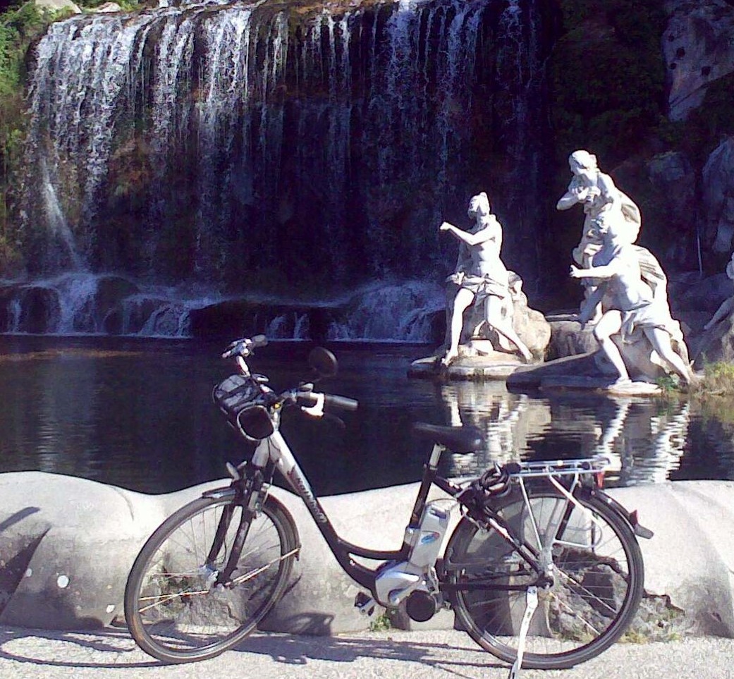 Mattina di collaudo su strada per il mio gioiellino! Percorso cittadino con passeggiata nel parco della Reggia di Caserta. Bici migliorata in fluidità e assenza di cigolii e rumori di almeno il 50%; dove usavo la 1 marcia ,stamane, sono salito, nell'ultimo tratto fino alla cascata, con 2 e 3 marcia e a motore spento,al ritorno, ho toccato circa i 55 km ora! Che meraviglia andare ora in Kalkhoff! Tutto merito di un po di grasso al silicone ,della centratura della ruota postiere e del riallineamento del parafanchi posteriore e di un po' di serraggio di viti di qua e di la! TUTTO E' STATO FATTO DA SOLO E SENZA ALCUNA SPESA e TUTTO SEGUENDO I CONSIGLI DI ELLE PIX ecc ecc. Vi posto qualche foto di questa mattina: