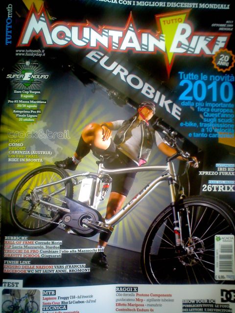 Sulla copertina di ottobre dell'autorevole rivista TUTTO Mountainbike, campeggia la Flyer biammortizzata che quindi viene scelta come più rappresentativa di Eurobike 2009.