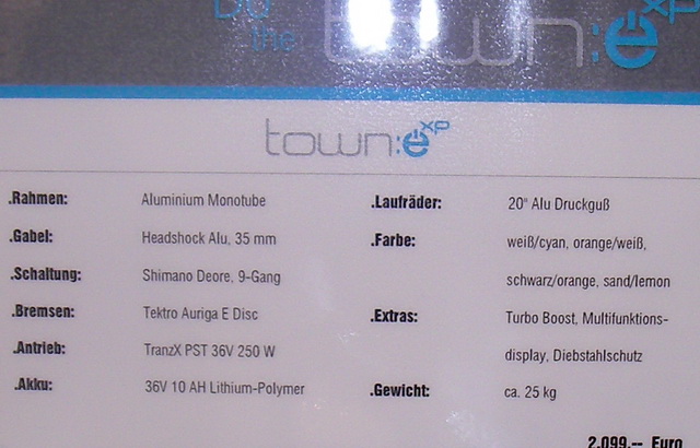 Non mi ha fatto una buona impressione, ha un non so che di tarocco. Meglio quella da donna, e comunque al di là dello sforzo stilistico e qualche componente discreto, non ha niente di particolare o di nuovo o di allettante (almeno a vedersi). Anche l'alloggio batteria pitturato lascia perplessi sull'utilizzo come porta pacchi.
