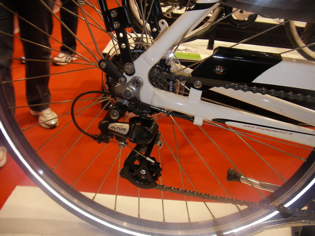 Olympia: ricco stand votato alle muscolari, con una sola elettrica in primo piano (anche di questa non ho foto intera mi spiace), dalla componentistica media e con filosofia: stessa muscolare con hub anteriore, ma sarete curiossissimi di sapere quale hub, no? Eccovi accontentati: