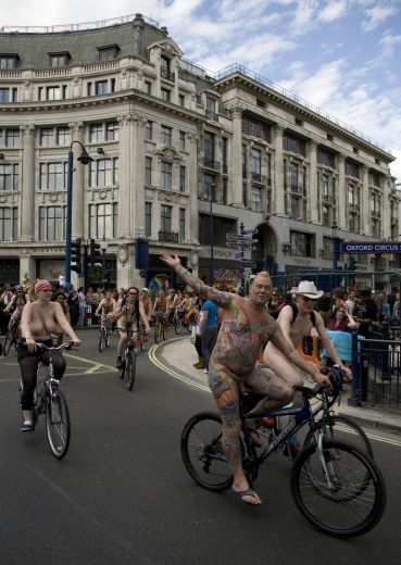 Carlo non ci trovo nulla di male! Andiamo a vedere l'obiettivo! Preferisco vedere di gran lunga uomini e donne come mamma li fece, che spettacoli come l'uccisione di animali per adornare le donne d'inverno,più per vezzo che per una reale necessità. Si protesta per incrementare l'uso della bici,delle piste ciclabili, ridurre l'utilizzo delle auto, e così via. Ben vengano queste manifestazioni! Se fosse per me farei manifestazioni tipo Critical Mass tutti i fine settimana. Sono sicuro che i governanti alla fine ci dovrebbero ascoltare. E non come succede all'Estate Romana ad es. che per via del denaro gli stands hanno invaso una delle piste ciclabili più belle di Roma, fregandosene dei ciclisti. Roba che succede solo in Italia....