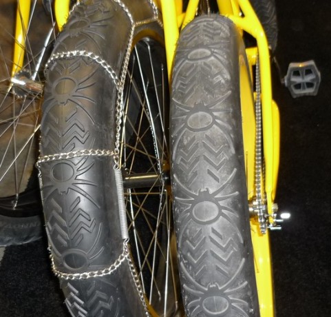 Infine, una foto di parte: esistono anche le catene per le gomme della mia pugsley