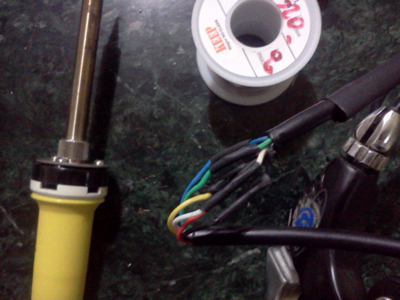 ... ho provveduto a stagnare ognuno dei 6 fili e ricoperti con una guaina termo-restringente per isolarli al meglio -->