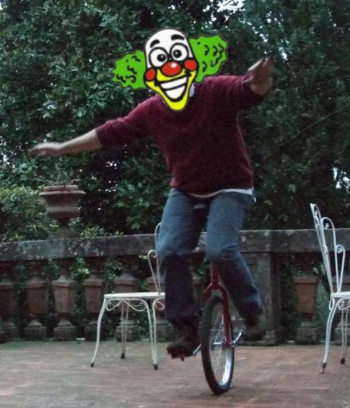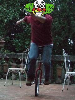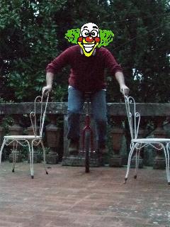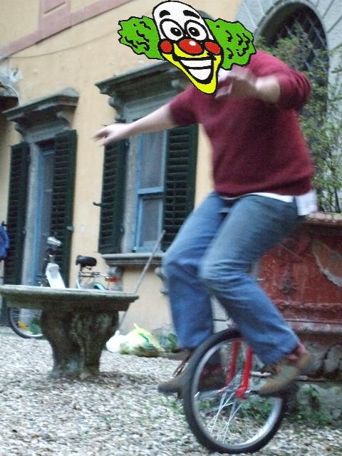 eccomi all'opera in casa (attaccato alla cyclette)... scusate: ho nebulizzato il casino che mi circondava... Peraltro in casa ci si può allenare giusto a stare sopra l'uniciclo ma all'inizio è un po' pericoloso!!! ;-)