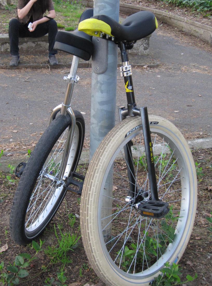 Il nuovo 26 mi sta dando delle soddisfazioni... ci si possono fare anche delle girate a patto di avere un po' di tempo a disposizione (velocità circa 10km/h...); mentre col 20 la velocità è sempre un grosso limite quindi bisogna comunque rimanere nei pressi. La tendenza (come per molti monociclisti) è di aumentare il diametro della ruota ... fino al limite del 36' che è comunque un ruotone veramente esagerato! (ma mi fa gola...)