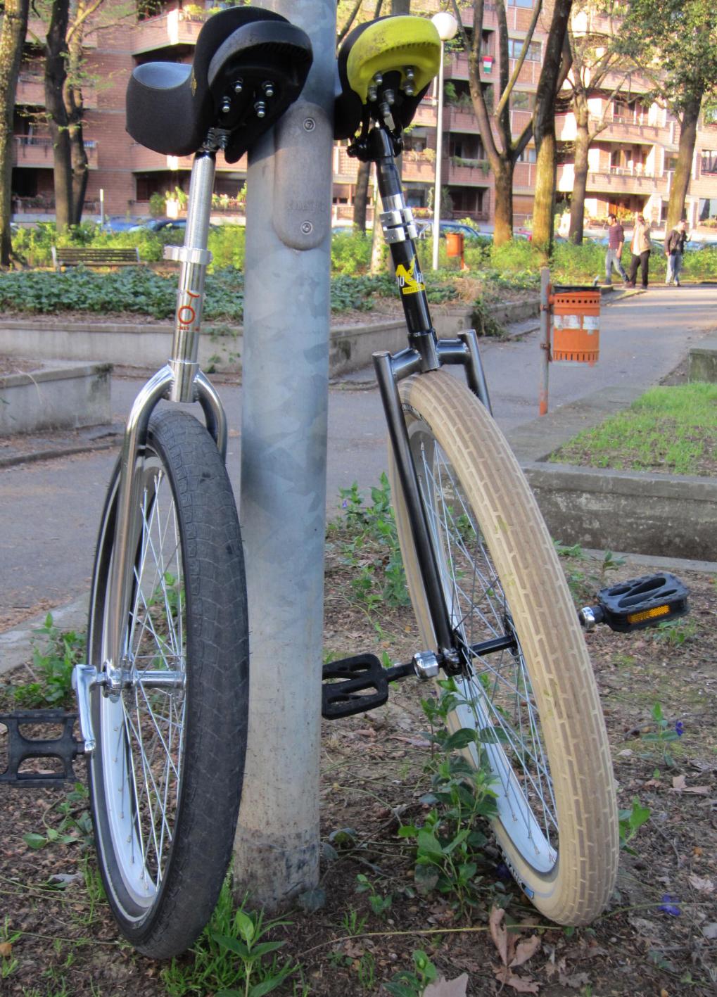 nelle pendenze più forti dovevo scendere dal mono abbastanza spesso perché le gambe mi si irrigidivano per lo sforzo!!! ma sul prossimo mono monterò quasi sicuramente un freno e in quel caso ci sarà da ridere (anche perché il prossimo non sarà certo un 20 e quindi il potere frenante della pedalata risulterà meno evidente).